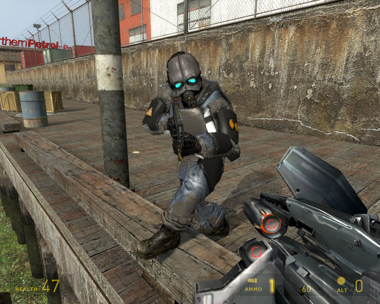 Half-Life 2 PC 49 January 29, 2018 1280 × 1024 Half-Life 2, PC Combine soldier too close for comfort.
