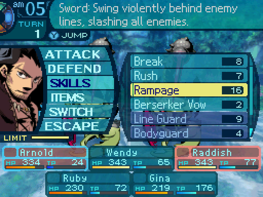 Etrian Odyssey III – Nintendo DS 083 April 7, 2018 1024 × 768 Etrian Odyssey III: The Drowned City, Nintendo DS [Part 2] Rampage: swing violently behind enemy lines, slashing all enemies. Etrian Odyssey III – Nintendo DS 083