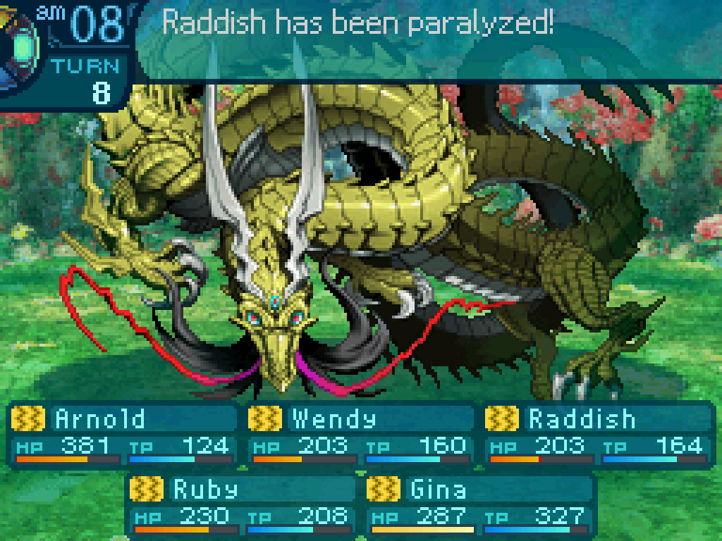 The third of the three legendary dragons: simply called “Dragon”, aka the Golden Dragon. Here it paralyses my entire party on turn eight. There is a fourth legendary dragon, called the Elder Dragon, which you can fight if you beat the three legendary dragons. I haven’t seen it yet though. And may never will!