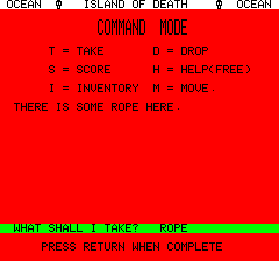 Island of Death, Oric