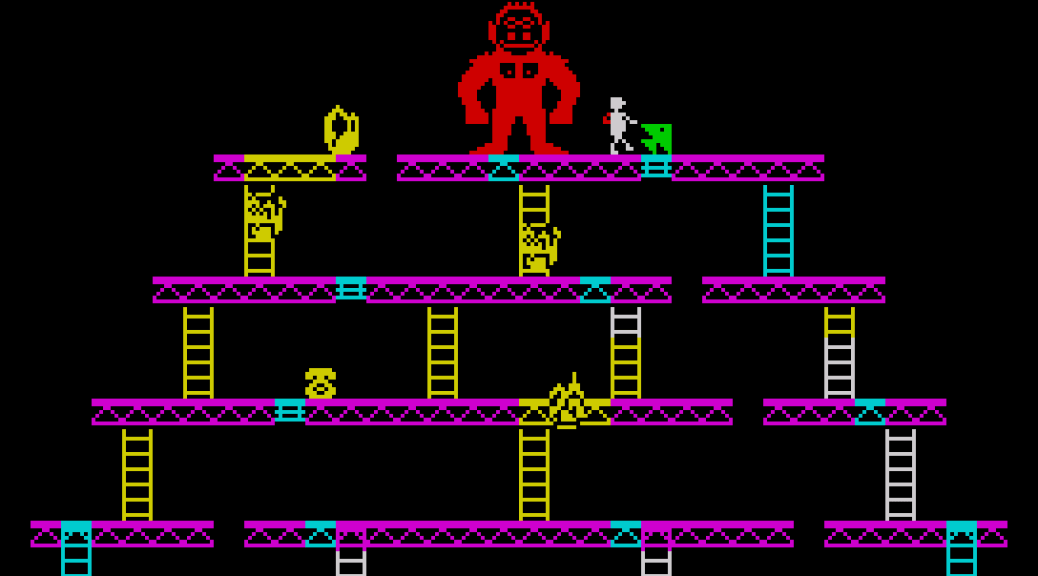 The game features some epic colour clash when the fire sprites move around, as they turn everything yellow, like themselves. Even Kong himself.