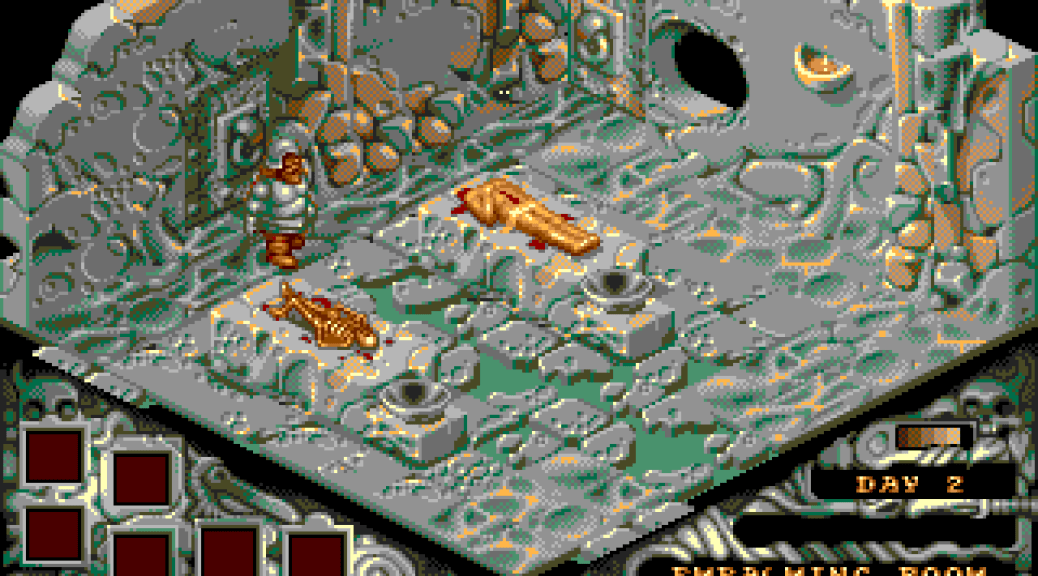 Created by The Bitmap Brothers and published by Image Works in 1990, Cadaver is an isometric platform/action game with puzzle elements, but with Dan Malone‘s distinctive artwork adorning it. We’re looking at the Amiga version here today, but it also came out for the Atari ST and PC MS-DOS.