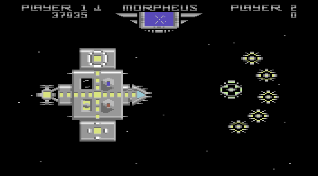 Andrew Braybrook‘s 1987 release, Morpheus, is a strange mix of space shooter and resource management. Management of your ship’s shield’s mostly, which can be prolonged by adding extra generators, or by building up the size of the hull.