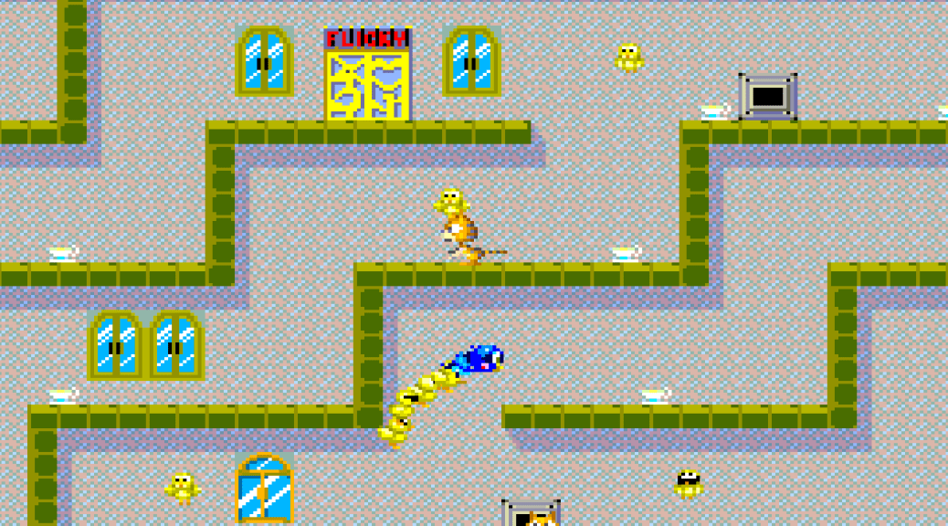 Originating in arcades in 1984, Flicky is a super cute bird-collecting platform game by Sega that relies heavily on gravity, inertia, and jumping to provide the challenge.