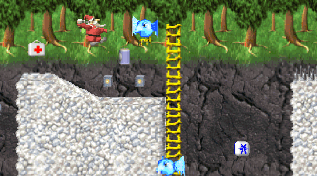 Created by Lithuanian developer Ivolgamus and released for the PlayStation and Game Boy Advance by Telegames in 2002, Santa Claus Saves The Earth is a Christmas-themed platform game that plays better than it looks. Not that it looks particularly bad – it doesn’t; it just doesn’t look that good either. Let’s just call it “middle of the road“… 🙂